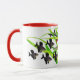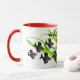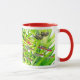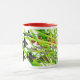 Firehead tetraなどの小型の熱帯魚の写真で構成したマグカップです。水草の葉の隙間からは小さな魚を狙う大きな魚も見えています。なお、このマグカップは、魚の背景に明るい緑色の水草(=Eichhornia azurea)を敷いているので、とても明るい印象の製品になりました。 ( Photo & Designed by KOBAYASHI,Michinobu )