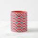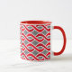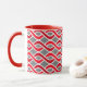 Caneca de café num design moderno do século Médio de fitas interligadas em tons de vermelho de batom profundo, acentuado com branco, sobre cinzas de grafite/fundo de cinza