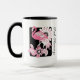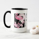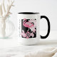 O design apresenta um flamingo com padrões paisley caleidoscópicos em tons de rosa. Esta ilustração química original de ave tropical faz uma caneca de café giro e única com texto personalizado.