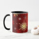 Caneca Flocos de neve do Ouro de Natal em Fundo Vermelho