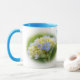 Então flor azul de hydrangea macia e encharcada. Você pode personalizar esta xícara usando a ferramenta design - excelente para o trabalho se você tem o hábito de colocar sua caneca no chão e deixá-la - todos saberão a quem ela pertence. Disponível em tamanhos e estilos diferentes. ideia de presente de excelente!