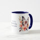 Lindas borboletas com flores nesta caneca de aniversário feliz personalizada. Adicione três linhas de texto para tornar seu presente especial.