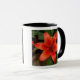 Uma linda flor de lírio, cor de chama, floresce nesta caneca de café floral, atraente aos olhos. Também disponível no cheio de canecas regulares e de vidro no Zazzle — clique simples para personalizar.