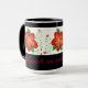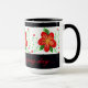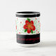 Caneca preta de café, com impressão vermelho florado. O texto pode ser personalizado para sua própria mensagem inspiradora, ou o texto pode ser removível. Lindo ideia personalizada de presente.