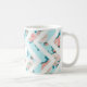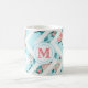 Caneca floral azul customizável do clássico do teste padrão da viga do monograma.
