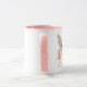 This Easter themed mug has bunny ears peeking out of a spring flower bouquet with the words "Happy Easter" in pink.