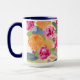 Cor de rosa e laranja, pintura original de aquarela por mim, Kristina. Impresso numa caneca de duas tonalidades com marinho interior e alça