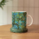 Aproveite a sua bebida favorita, quente ou fria, nesta caneca de café colorida que apresenta uma foto de enrolamento das flores azuis e folhas variegadas da planta Brunnera Jack Frost. Selecione o estilo e a cor da caneca. Um design floral divertido!