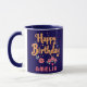 Floral Flowers Happy Birthday Handlettering Coffee Mug. Celebrate a special birthday with this charming personalized mug! Featuring a hand-drawn floral design, cheerful "Happy Birthday" text in playful orange script, and a custom name. Ideal for daughters, nieces, granddaughters, or friends.
