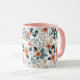 This beautiful design features a pattern of flowers illustrated in coral and peach tones, with blue and teal leaves. Perfect for gifting on Mother's Day, weddings, for a friend or to enjoy a coffee.