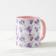 Linda caneca de café com padrão floral roxo e rosa. Redecore sua cozinha.