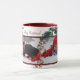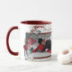 Caneca de Natal tradicional personalizada com 2 fotos da família, com bagas vermelhas e ramos de abeto, a cores aquáticas, no tradicional granizo vermelho-burgundy e paleta de cor verde-pinheiro. ++++++++ Editável "Feliz Natal".