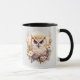 Caneca Flores Bonito de Coruja Branca e Folhas Cinzas Hal