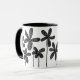 Um design de caneca original com um arranjo atraente de caneta desenhada à mão e flores do estilo tinta.