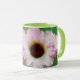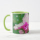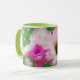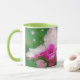 Esta caneca floral bonito apresenta minha fotografia original de flores cor-de-rosa, processada com uma técnica de aquarela para um estilo ilustrado e pareado com um toque de cinza. Ele tem um dentro verde colorido e na alça, que pode ser alterado se desejado. Estas são canecas de 11 onças, do tamanho perfeito para o café ou chá da sua casa - ou até chocolate quente! Ele faria um presente de excelente e você poderia colocar pacotes de café, bolsas de chá ou dentro de chocolate quente. Uma outra ideia de presente é colocar uma pequena planta nela para torná-la mais especial para o seu amado.