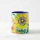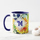 Bonito cor-de-água rosa, amarela e púrpura, flores de ai art, caneca de café floral. Adicionar inicial na área personalizada.