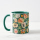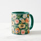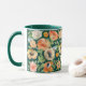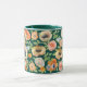 Cor d'água colorida e anêmonas cor de laranja pastel, brancas e cor-de-rosa, papoilas, rosas e outras flores da primavera com folhas verdes pálidas sobre fundo verde-caçador. A cor do plano de fundo pode ser alterada no editor.
