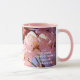 Flores de sakura rosa adoráveis, flores de cerejeira japonesas. Fundo rosa suave e azul. Jogo de luz. Caneca de café personalizável linda. Você pode mudar a imagem e pode mudar ou excluir o texto do haicai do modelo. Você pode transferir este design para uma variedade de outros produtos, incluindo caneca de latte, xícara de vidro, jarro, bule de chá, tigela de chili, pote de doces, garrafas de água, velas. Basta escolher o produto na opção rolável "Transferir design para um produto". Não se esqueça de usar o botão "Personalizar" ou "Editar design", ou o link azul "Detalhes" --> "Clique para personalizar ainda mais" --> "PREENCHER/AJUSTAR" para AJUSTAR O DESIGN AO TAMANHO E FORMA do produto, para girá-lo, para mudar a posição, tipo, cor da fonte ou