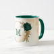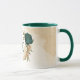 Linda caneca de café com flores esmeralda verde e dourado bege com folhas verdes. Para mais produtos correspondentes, clique na coleção acima ou entre em contato