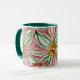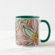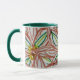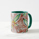Caneca decorativa moderna de flores cor-de-rosa e verdes.