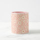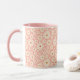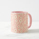 Pequenas flores em fundo cor-de-rosa são uma caneca gira e feminina.