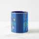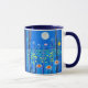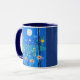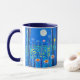 Caneca de café numa cena de fantasia de flores silvestres, sob a lua de cheio, em azul-noite e turquesa