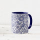 Esta caneca é projetada com um padrão aquoso simples e moderno de flores silvestres e borboletas. As borboletas são azuis, vermelhas e laranja. As flores e folhas são verdes, azuis vermelhos e amarelas.