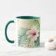Transporte-se para uma era passada com as Flores Tropicais Vintage e a Folhagem! Essa charmosa caneca apresenta um arranjo espantoso de flores tropicais com um delicado centro magenta claro, colocado contra um pano de fundo de monstera e palmeiras em matizes pastéis moles, vindimados, com interior e alça verde-escuros. Cada sip irá transportá-lo para um paraíso tropical, completo com o calor e o capricho de uma era passada. Feita a partir de materiais cerâmicos de alta qualidade, esta caneca é segura tanto para durar quanto para lavar louça, garantindo uma adição duradoura à sua rotina matinal ou como um presente delicioso para qualquer amante de plantas antigos. Então, por que esperar? Adicione um toque de encanto nostálgico ao seu dia com a Vintage Tropical Flowers & Foliage Mug!" — Criada com IA generativa.