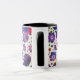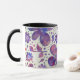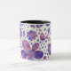 Flores violetas românticas e deixa uma caneca de arte original. Brincadeira de formas naturais gentis de flores e folhas numa superfície branca translúcida. A perspectiva surreal é pintada manualmente em acrílico, exibindo cores ametista, orquídea, lilac, beterraba e íris contra um branco leitoso. É uma visão carismática para um espectador apaixonado, um amante da arte que apreciará uma história infinita por trás da design. Esta pintura original é feita pela artista Aleksandra Grbic Hrustic. Direitos autorais, todos os direitos reservados. Esta caneca colorida é o parceiro ideal para o café da manhã.