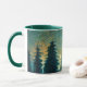 Caneca de pinheiro mágico e caprichosa. Perfeito para uma xícara quente de café, chá ou cacau! Invernos quentes da floresta de inverno.