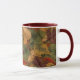 Mug com um bonito padrão de folha de outono texturizado em ouro, vermelho e verde.