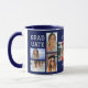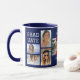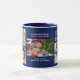 O Formando de Graduação Multifotográfica de Script Moderno Coffee Mug apresenta cinco das suas fotos favoritas do seu formando de faculdade, universidade ou segundo grau com o moderno "Formando" de cobertura de script branco em um fundo azul. Simples, na moda e elegante. Faz o dom perfeito para um formando. Criado por ©Evco Studio www.zazzle.com/store/evcostudio