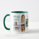 O Formando de Graduação Multifotográfica de Script Moderno Coffee Mug apresenta cinco das suas fotos favoritas do seu formando de faculdade, universidade ou segundo grau com o moderno "Formando" do roteiro verde. Simples, na moda e elegante. Faz o dom perfeito para um formando. Criado por ©Evco Studio www.zazzle.com/store/evcostudio