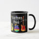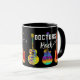 Comemore seus amigos médicos ou familiares se eles estão se formando em medicina ou apenas fazendo um trabalho de excelente com esta engraçada caneca de café Doctors Rock com guitarras psicodélicas legal e coloridas e tipografia rochosa e rochosa moderna. Guitarras elétricas únicas e guitarra acústica ilustram detalhadamente o azul roxo roxo, cor-de-rosa, amarelo e laranja num fundo preto. Arte original da artista Catherine Sweetman