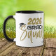 Aqui está um presente divertido para a faculdade ou formando segundo grau. Um boné preto está diretamente acima do "S" no texto dourado e no texto preto que diz "Esquadrão de FORMANDO (YEAR)". A imagem e o texto são repetidos em dois lados da caneca, com o nome do formando em texto preto entre eles. O campo de texto do ano pode ser facilmente alterado para o apropriado.