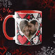 Caneca Foto de Corações e Flores Vermelhas, Pretas e Bran