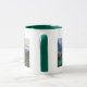 Uma caneca com uma bela fotografia da natureza. Apresentando montanhas alpinas com neve e lagoas tranquilas enfiadas a dentro do vale dessas montanhas majestosas.