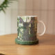 Uma caneca de café de grande porte, cerâmica, para suas bebidas quentes ou frias, que mostra a foto de uma floresta alerta, Mule Deer. A imagem é impressa em ambos os lados da caneca. Selecione o estilo e a cor da caneca.