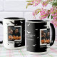 Envie sua expressão de Dia das Bruxas para seus entes queridos com design de caneca branca e preto simétrico, com quadros e morcegos de fotos da família branca e preta. Você pode personalizar todos os textos facilmente ou simplesmente deixá-los vazios.