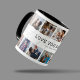 A primeira caneca de dia de os pais bonita com 14 fotos da família para você substituir por sua, o texto "primeiro dia de os pais" em uma fonte elegante de cinza clara, o bonito ditado "AMEM VOCÊ PAI" e o nome dos filhos.