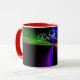 This geometric coffee mug features a custom colorful four-way wave theme modern design. Text customization and additional mug colors features are available to personalize to your preference.