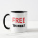 Custom freethinker quote mug with personalized text, white ceramic inspirational cup.