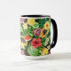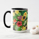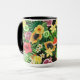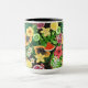 Caneca Frutas tropicais, flores e folhas a preto