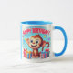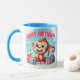 Colourful kid's birthday mug featuring a cheeky monkey.