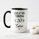 Make turning 40 feel fun and fabulous with this playful birthday mug featuring the phrase “Look at you turning 20 twice” in eye-catching fonts. The other side includes a beautiful floral illustration with a customizable name and year, making it perfect for a meaningful and personal touch. Ideal for celebrating a 40th birthday, this mug lets you change any part of the text — including the number "20", name, or birth year — to suit any milestone. A cheerful gift idea for moms, sisters, friends, or coworkers stepping into their forties with a smile!