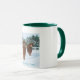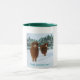 Gado fotografado em um campo no inverno. Isto foi pintado mais tarde usando o goauche. Texto adicionado para o efeito na caneca.
