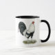 Os galos duckwing de prata são galinhas resplendent em preto e branco lustroso. A galinha de Duckwing é nomeada para o bar de asa azul-preto, como a asa de um pato selvagem. Comissão por Kenny Troiano para seu livro em cores da galinha de jogo.