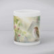 A soft watercolor scene captures a gentle songbird resting on a white garden fence surrounded by blooming pink roses, leafy vines, and warm morning light. The palette glows with pastel greens, blush pinks, creamy whites, and sunlit gold, creating a calm cottagecore atmosphere filled with quiet charm. Loose painterly brushstrokes and airy light give the artwork a whimsical folk feel, evoking peaceful garden mornings, vintage storybook illustrations, and romantic shabby chic beauty. AI generated artwork.
