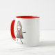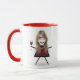 Garota bonita com cabelo, óculos vermelhos, vestido de xadrez tartana, colar pérolas, e segurando um copo de vinho tinto com uma citação inspiradora para qualquer mulher.