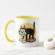 Gato preto dos desenhos animados retros, com arqueado para trás e penugens do pescoço aumentadas, em um fundo da Lua cheia. Os t-shirt, suam, cartões, ganhos do presente da novidade.